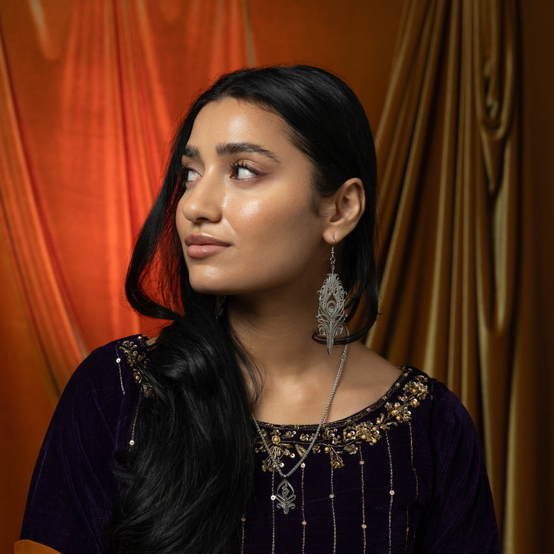 SALĀAM, a graceful echo of every moment you’ve chosen stillness over chaos. With Arabic calligraphy of the word "salaam" drawn in the shape of a peacock feather, this piece radiates quiet dignity. Wear it as both a shield and an offering: to walk gently, speak kindly, and carry peace wherever you go.