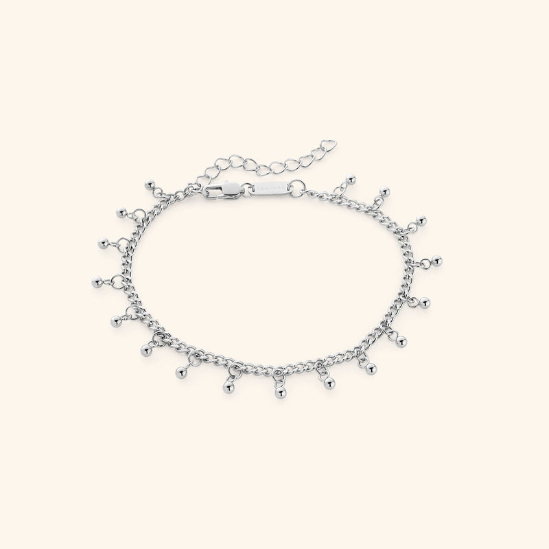 The Dangling Dotted Anklet features an evenly spaced array of charms that deliver a minimal and elegant aesthetic to your wardrobe reminiscent of cultural jewelry dating back to India, now meant for essential everyday wear.