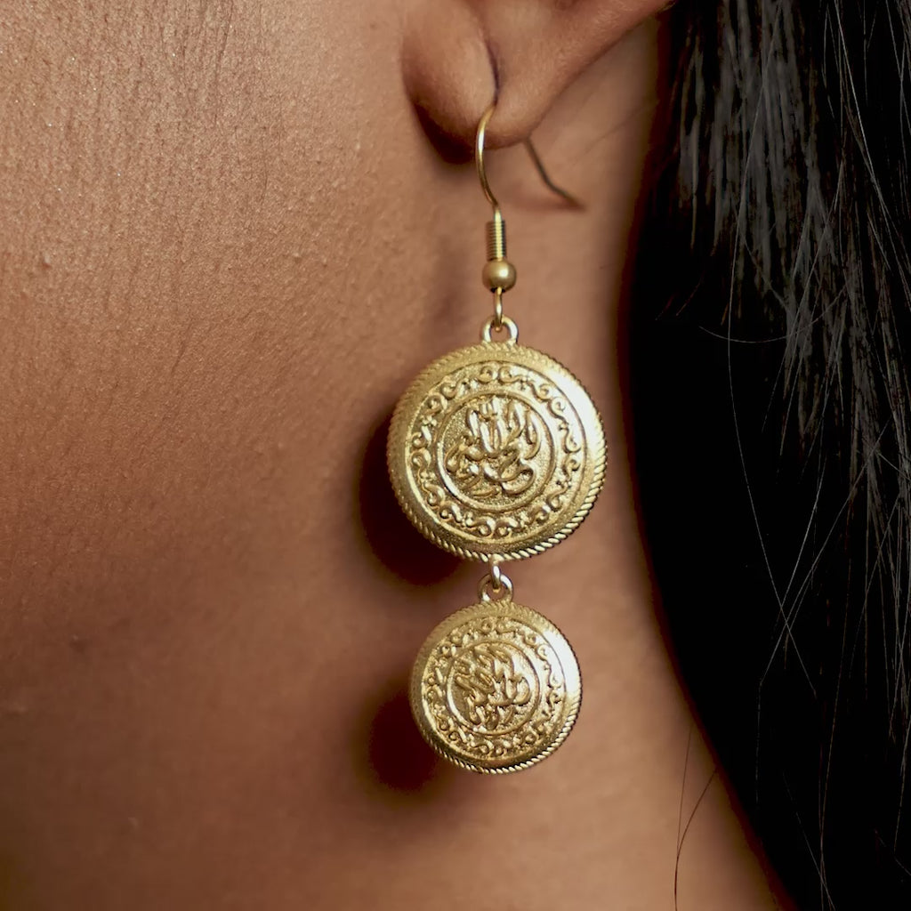 Arranged like vintage coins, these Alhamdulillah Earrings feature Arabic calligraphy embossed into the coins, giving you a royal feel all while reminding you of everything beautiful to be grateful about.