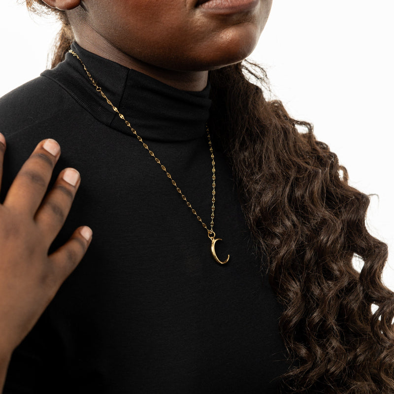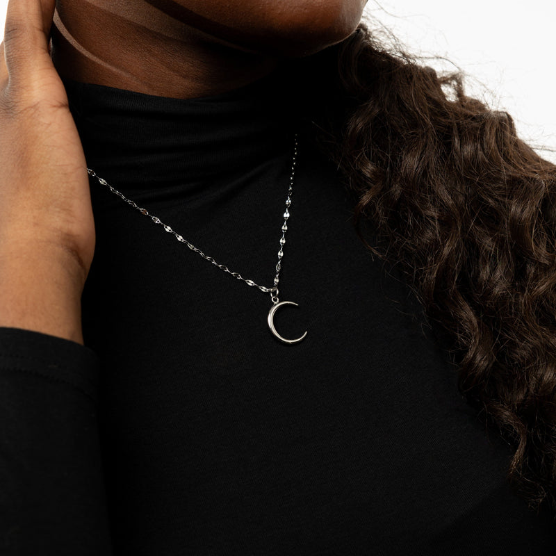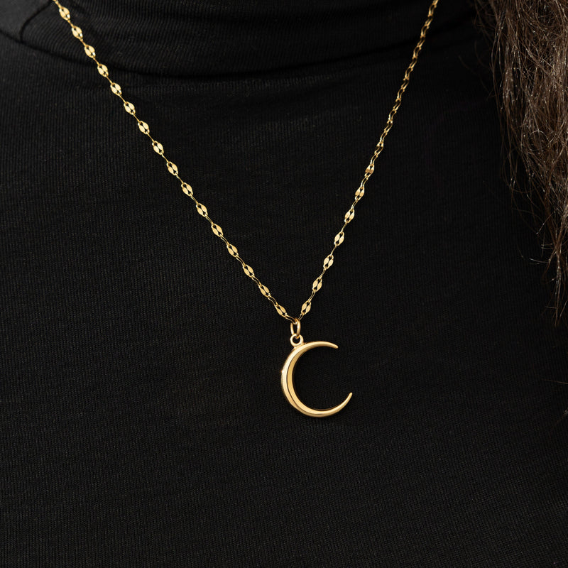 The moon is a symbol of hope, a gleaming light that erupts through the dark night sky. Made with a twist to our original crescent necklace, our Premium Crescent offers a unique design that stays true to the sentiment of the classic predecessor, but with an elegantly softer 3D mold and a brand new chain that is sure to catch eyes and stack beautifully with other pieces.