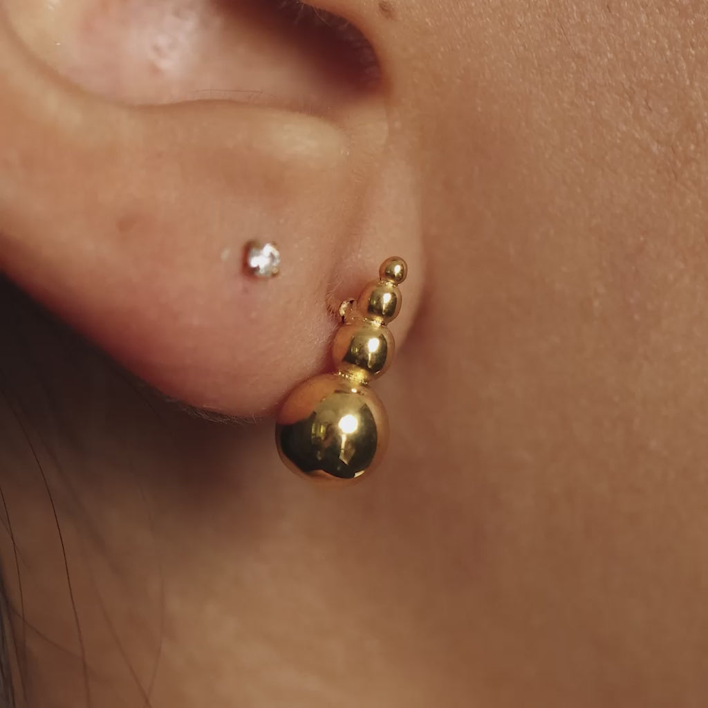 Four orbs, each growing in size, cascade into one another to form a sculptural silhouette that feels both playful and refined. Inspired by the clusters often seen in henna designs and traditional jewelry, these studs add a modern edge to a nostalgic detail.