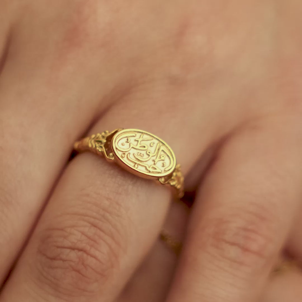 A vintage-inspired piece with a message that never gets old. The oval centerpiece carries the Arabic engraving “حب الوطن”, love of the homeland, framed by a detailed heritage-style band. It’s subtle and made for anyone who carries their home deep in their heart.