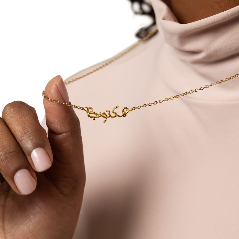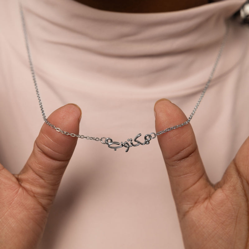 This piece features the calligraphic Arabic word, Maktub, which translates to "it's written", a subtle reminder that everything in life, the good and the bad, was authored by the Best of Writers. Find comfort and faith in knowing that what is meant for you will never miss you.
