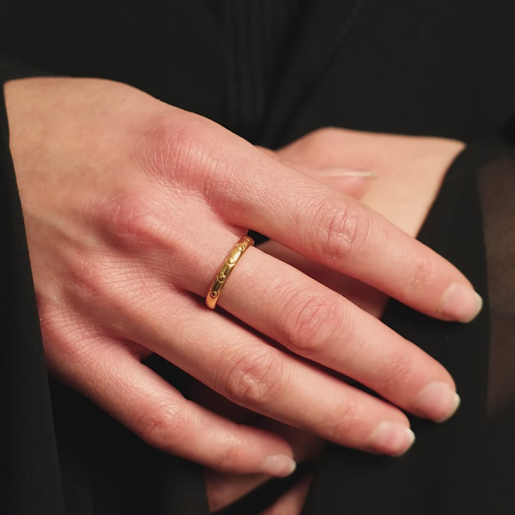 During periods when displaying the Palestinian flag was banned, the watermelon became a stand-in because its colors mirrored the Palestinian red, black, white, and green. This ring carries that legacy through carved watermelon seeds along a clean band. We've made this subtle enough to wear daily but significant enough to mean something for those who understand the resilient message underneath.