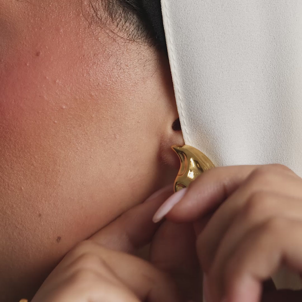 Molded after the movement of water, these bold studs feature a melted and organic shape with a softly hammered finish, like droplets caught mid-fall. Just enough edge to elevate your look no matter where you're headed.