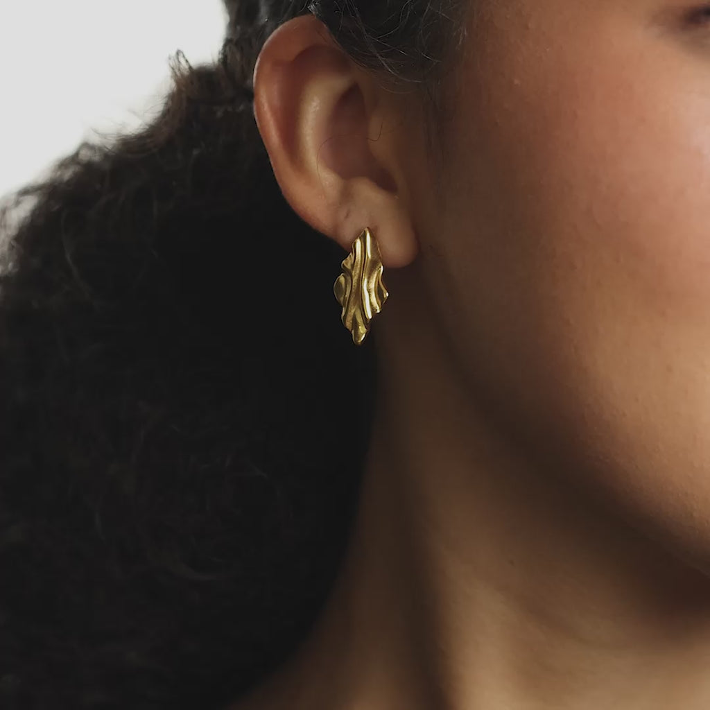 A sculptural take on a classic rectangular stud, these earrings feature a freeform, melted silhouette, somewhere between a square and a diamond. The hammered texture gives them that lived-in vintage feel without being too polished. Bold, but never loud.