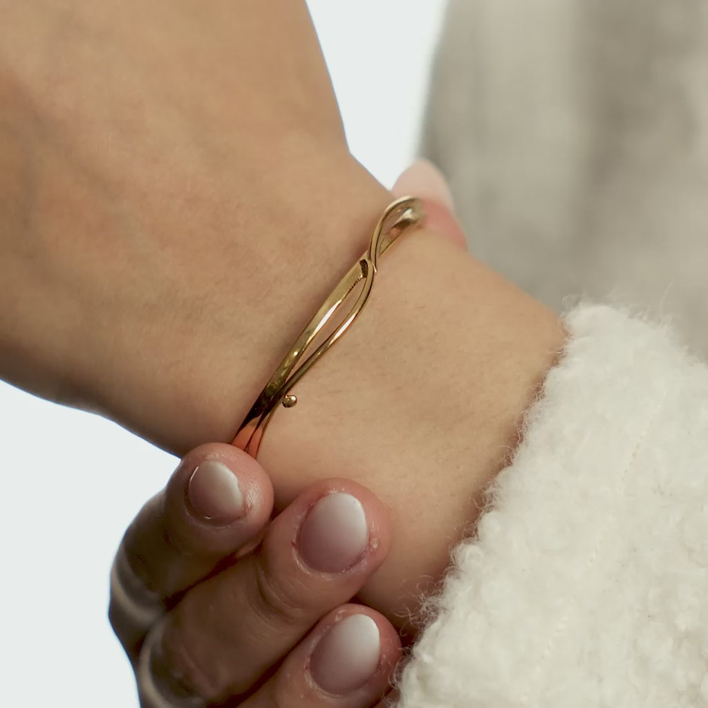 A simple cuff at first glance, but look closer and you’ll see the bands subtly intertwine to form the Arabic word حُب — “love.” It’s minimal, easy to style, and feels personal without needing to say much at all. A piece for everyday wear or a gift that carries its own message every time someone slips it on.