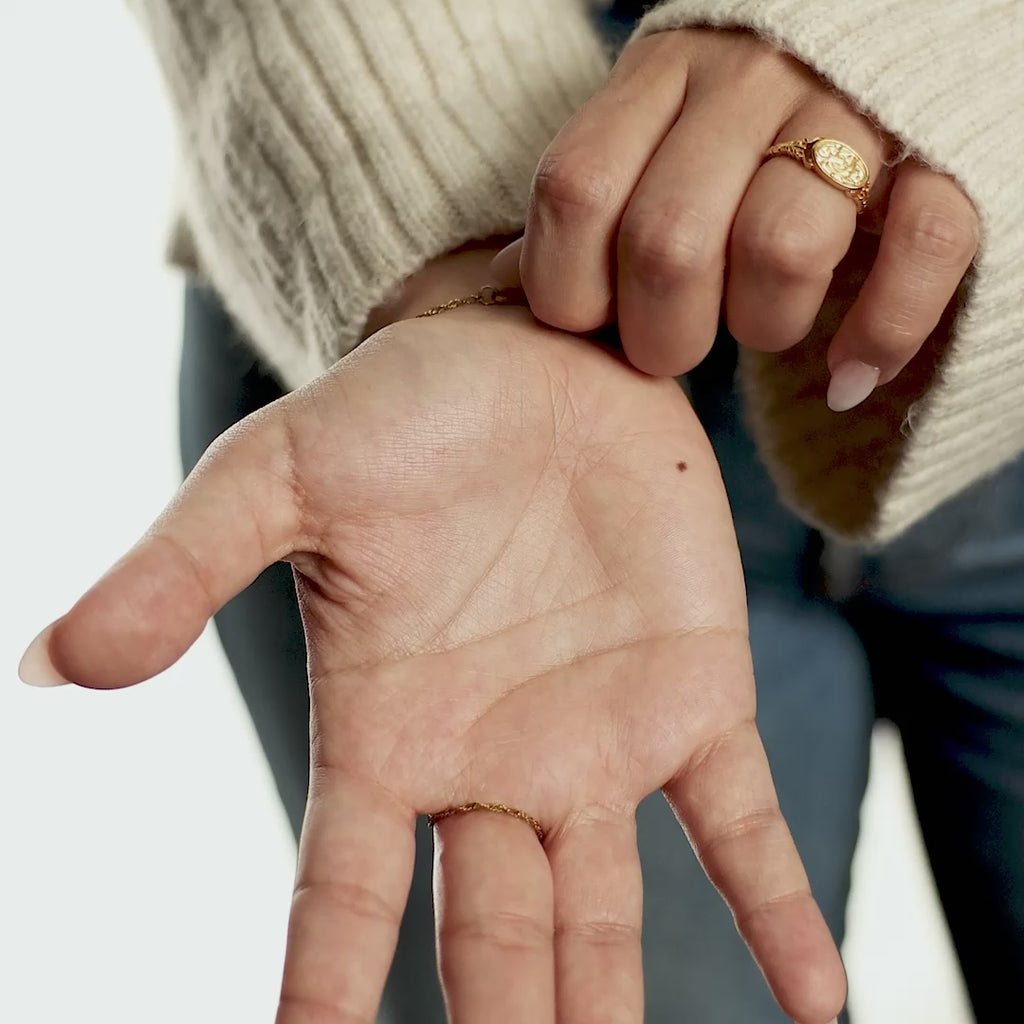 Inspired by the iconic fishnet pattern woven into the Palestinian keffiyeh, this hand chain pairs culture with delicate design. The twisted chains form the same net-like geometry seen on traditional keffiyehs, symbolic of the fishermen, farmers, and working class whose hands built the homeland. Each tiny bead sits at an intersection like a stitched knot, keeping the shape structured while the piece drapes fluidly across the hand. Light, detailed, and unmistakably meaningful, it’s jewelry that means something.