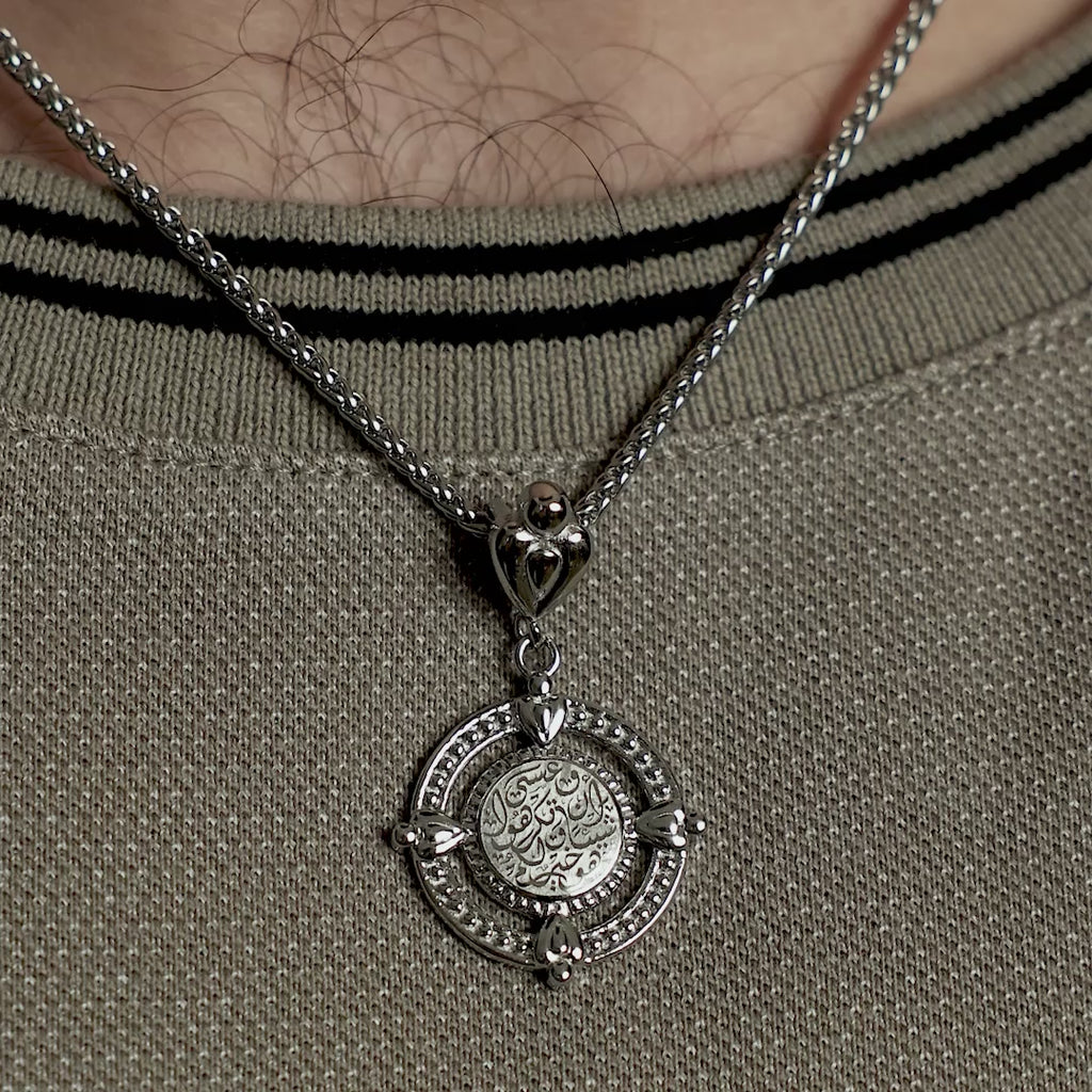 Pressed into a medallion with raised detailing and a beaded outer frame, this piece feels like something handed down. It’s the kind of reminder you carry close to the heart on the days when life feels uncertain.