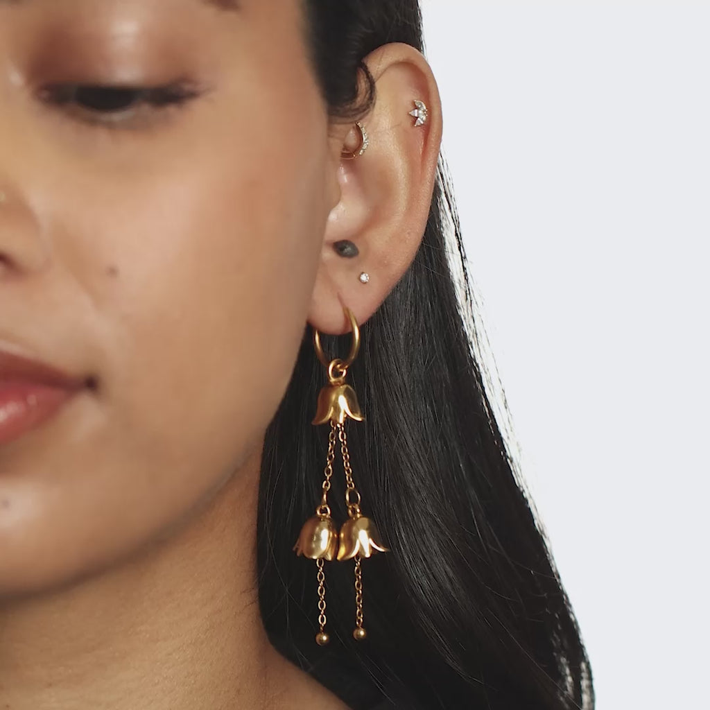 Tulips, symbols of love and celebration across South Asian heritage, inspire these cascading hoops. Each flower drops a dotted orb, swaying with graceful movement. Bold and timeless, these hoops bring the artistry of tradition into your everyday wardrobe without waiting for something to celebrate.