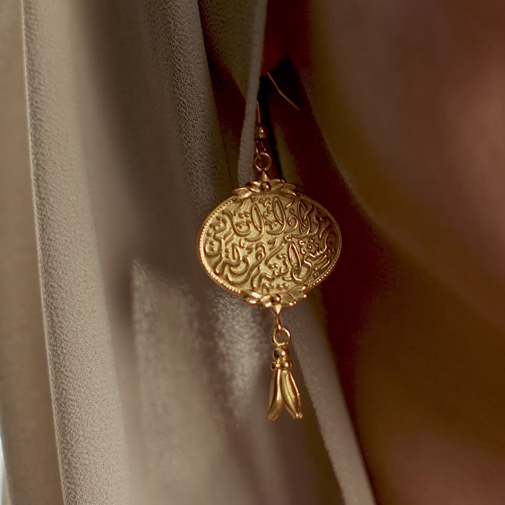 These ornate medallion earrings are engraved with one of the most comforting promises in Islam, a hadith qudsi where Allah says: "If My servant comes to Me walking, I go to him running." (Sahih Bukhari)