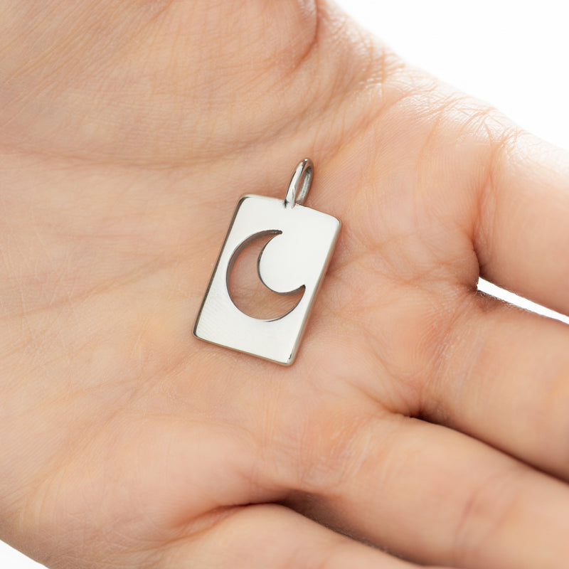 A quiet nod to nights filled with hope. This charm features an outlined crescent, a timeless symbol of renewal and faith, it’s meant to slip easily onto your chain and layer with other charms that tell your story of moonlight, even in dark skies, always being within reach.