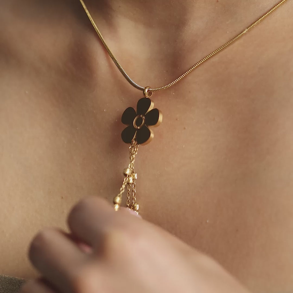 The Raining Flower Necklace is a celebration of delicate beauty, with a blooming flower pendant that releases cascading chains, each dotted with gold beads. Inspired by South Asian ornamentation, this mirrors the joyful energy of weddings and festivities while staying easy to wear every day.